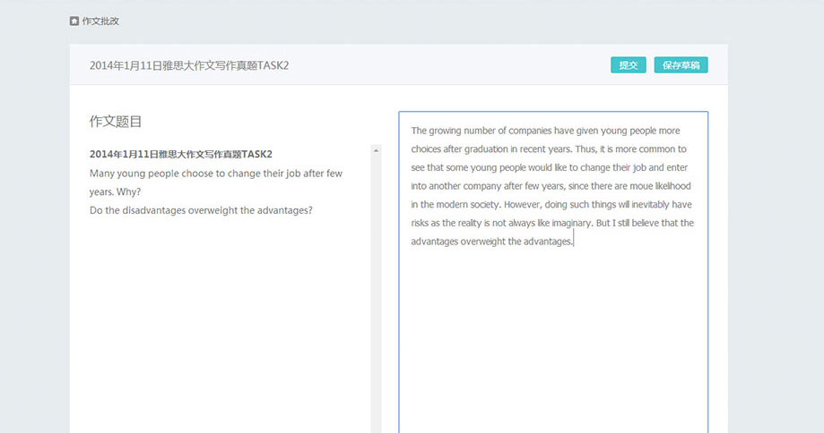| 批改形式 | 在线系统提交,提供详细统计批改报告+提问机会 | word,入门门槛低 水平参差不齐 |
